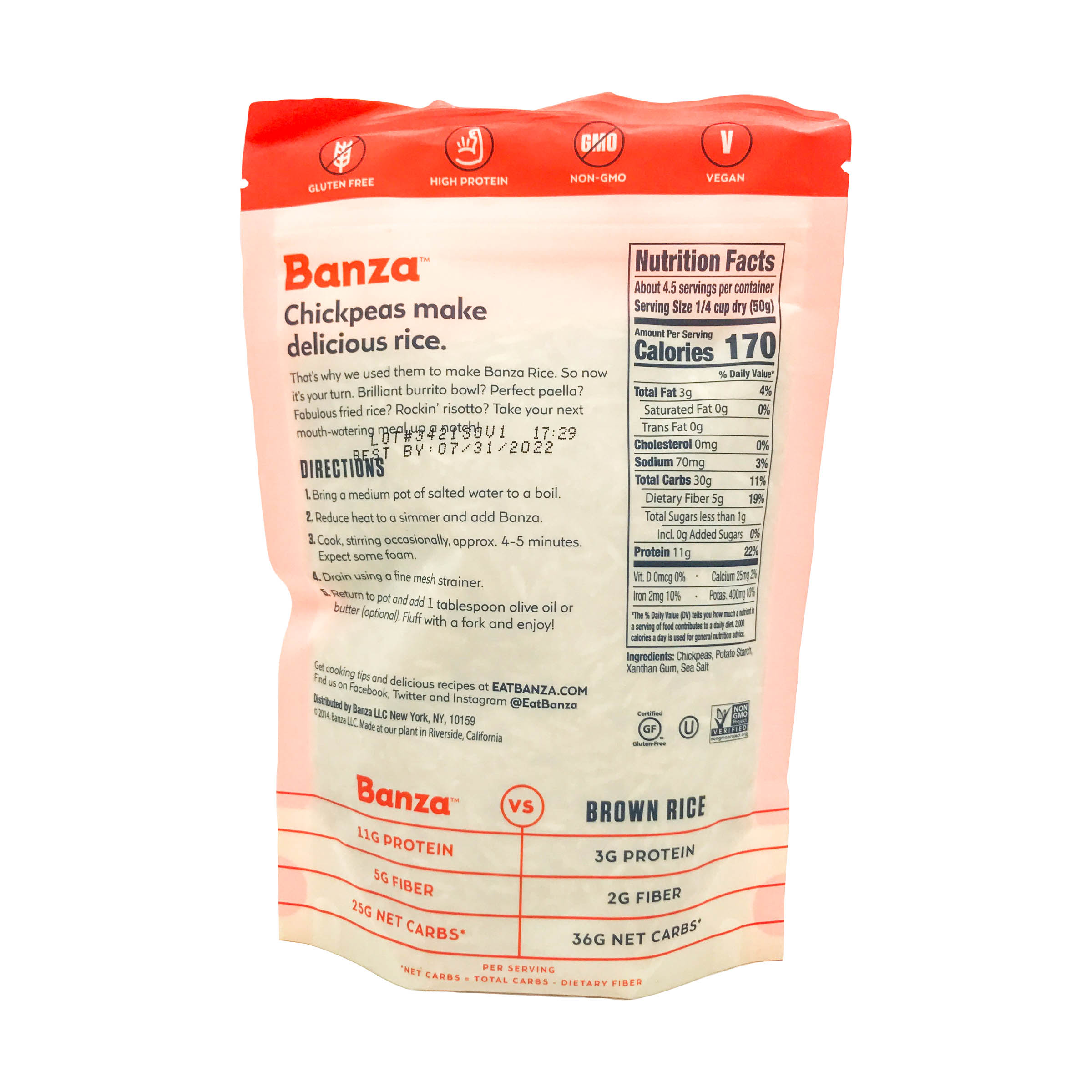 Banza nutrition label. The 7 best vegan pizzas - KXAN Austin Top vegan pizza crusts for the money. Rich's Home Cauliflower Pizza Crusts, Pack of 6. What you need to know: These crusts are ideal for gluten-free vegans who want to make their own pizzas ... Is Bertolli Vodka Sauce Gluten Free - SauceProClub.com Sauces made using Vodka. Most national brands of prepared pasta sauces, such as Bertolli, Classico, Emerils, and Raos Homemade, provide a gluten-free vodka sauce. Although Newmans Own contains nonfat dried milk, which is gluten-free in and of itself, there is a danger of cross-contamination in the manufacturing process. Does pasta have eggs in it? - 2022 Bronnie Bakes Does Banza Pasta Contain Eggs? Banza Pasta is 100% Gluten Free. It is made from rice flour, tapioca starch, potato starch, xanthan gum, and salt. It is certified Kosher by the Orthodox Union. `It does not contain any eggs. It is suitable for vegetarians and vegans. Other FAQs about Pasta which you may be interested in. How long does pasta last? Roasted Tomato and Goat Cheese Orzo Pasta Salad - apaigeofpositivity Ingredients needed for Goat Cheese Orzo Pasta Salad. Orzo - Orzo is a rice shaped pasta with a fun texture. Its small size works great for pasta salad because it mixes well with all of the other ingredients. Baby tomatoes - A delicious summer fruit (yes tomatoes are fruit!) that gets perfectly caramelized when roasted in olive oil. I used Nature Sweets which are SO flavorful.