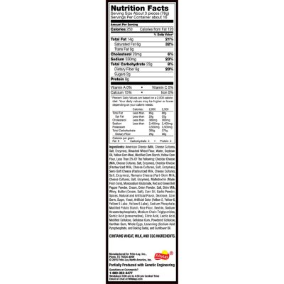 Doritos food label. DORITOS® Mix Variety Pack | Variety Packs 40mg. 2%. 0.3mg. 0%. 50mg. 0%. Not a significant source of added sugars. DORITOS ® COOL RANCH ® Flavored Tortilla Chips. Serving per containers. Amazon.com: baked doritos Doritos Nacho Cheese Flavored Tortilla Chips, 1 oz (Pack of 40) Nacho Cheese · 1 Ounce (Pack of 40) 36,366. $1518 ($0.38/Ounce) $14.42 with Subscribe & Save discount. Smartfood Popcorn, Doritos Nacho Cheese & White Cheddar Variety Pack ... Includes 8 (2oz) bags of Smartfood Popcorn: Limited Edition Doritos Nacho Cheese and White Cheddar flavors. Available for a limited time only, Smartfood Doritos Nacho Cheese flavored Popcorn is bursting with bold nacho cheesy flavor in every air-popped bite. Light and airy. DORITOS® Nacho Cheese Flavored Tortilla Chips However, we recommend that you check the label on a specific product for the most current and accurate nutritional information. If you need assistance, please contact Consumer Relations toll-free at 1-800-352-4477 Monday through Friday between 9:00 a.m. and 4:30 p.m. Central Standard Time.