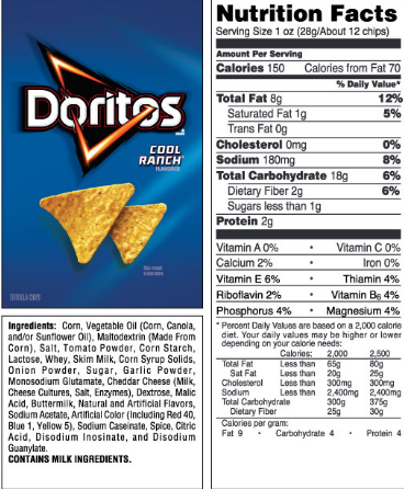 Doritos food label