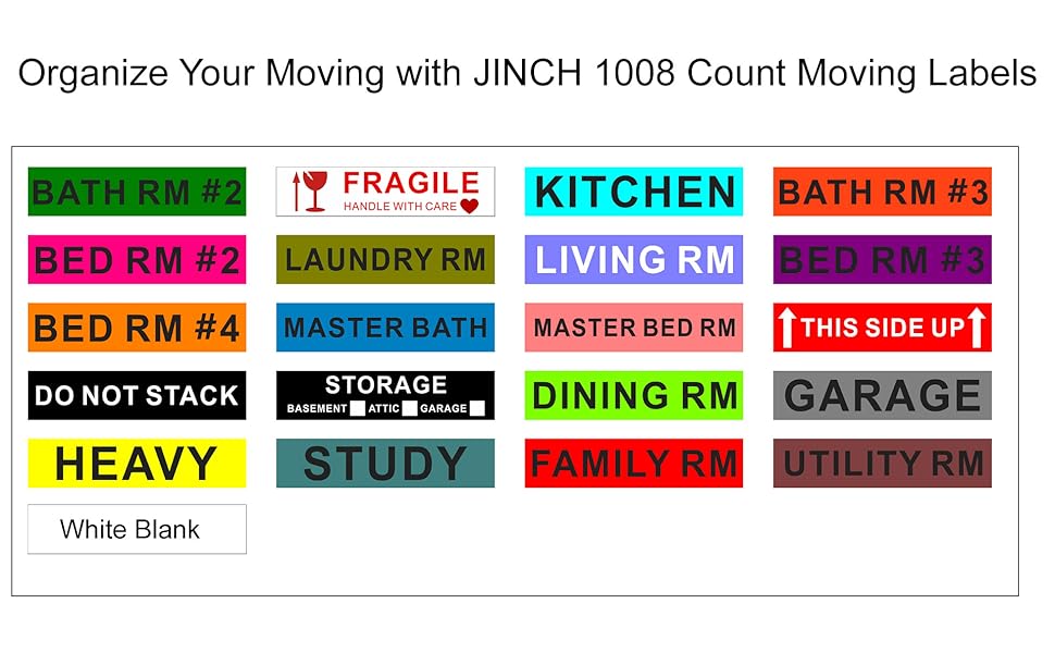 1008 Count Moving Labels Home Color-Coding Labels 21 Different Moving Stickers - 4 Bedroom 3 Bathroom Kitchen Fragile Blank Space Box Stickers 4.5 ...