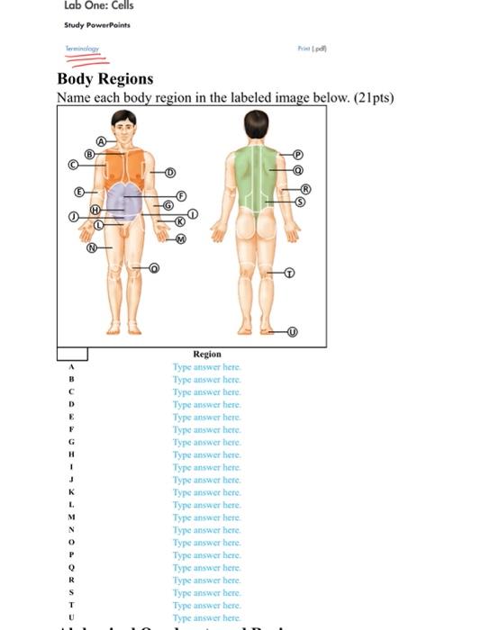 Body Regions Labeling Quiz - PurposeGames.com This is an online quiz called Body Regions Labeling There is a printable worksheet available for download here so you can take the quiz with pen and paper. Your Skills & Rank Total Points 0 Get started! Today's Rank -- 0 Today 's Points One of us! Game Points 33 You need to get 100% to score the 33 points available Actions