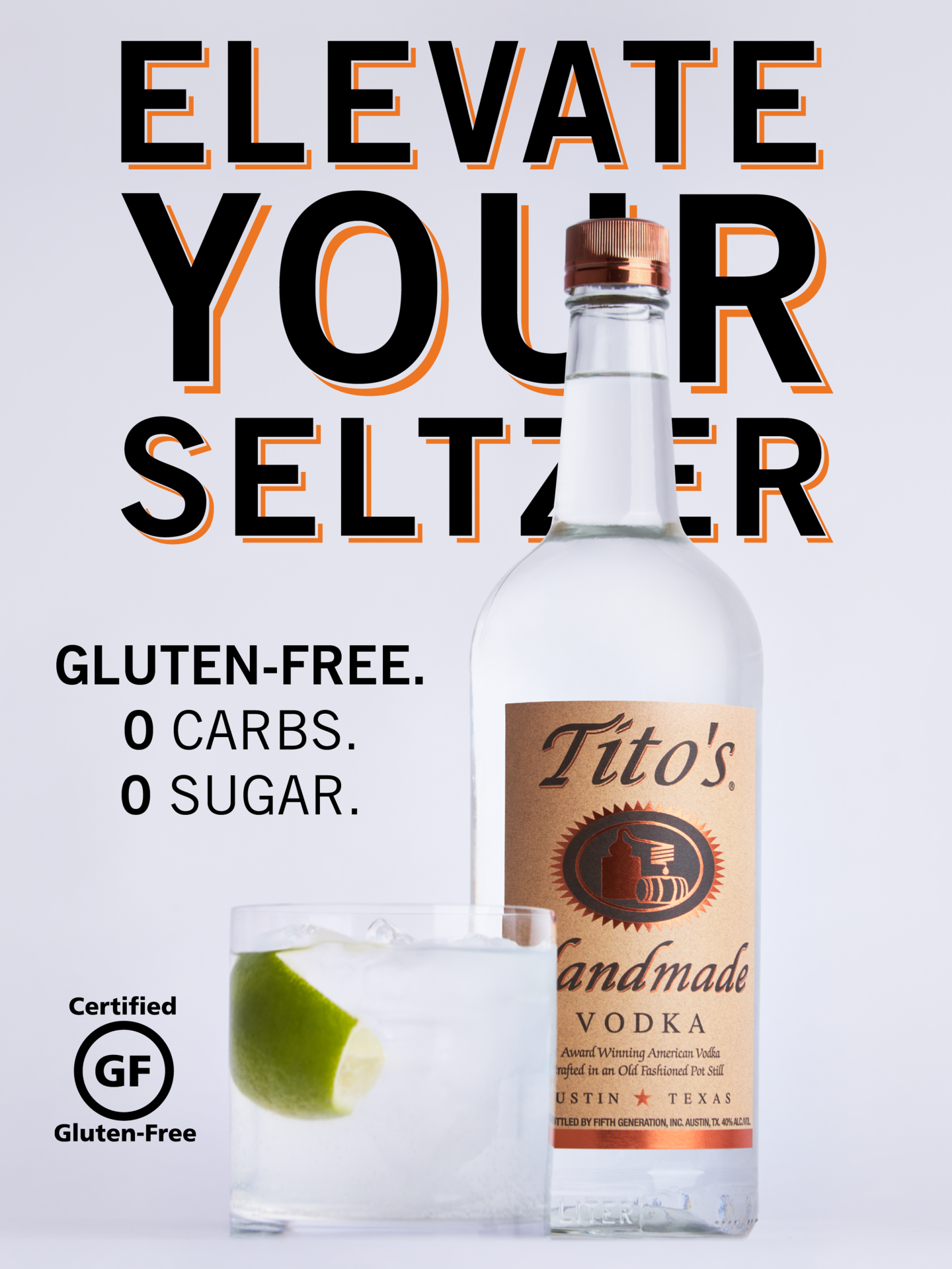 Tito's Handmade Vodka Tito's Handmade Vodka is distilled from corn and is certified GLUTEN-FREE. Distilled and bottled by Fifth Generation, Inc. Austin, Texas. 40% alcohol by volume. Getting Started "We bought every vodka that was on the shelf, tasted all of them and came up with the two best ones. When mine beat those two then I figured that I had my formula right."