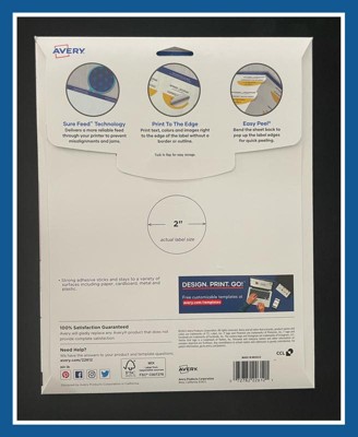 Avery® Matte White Round Labels with Sure Feed™, 2" Diameter, 300 Labels, Permanent Adhesive (22877)