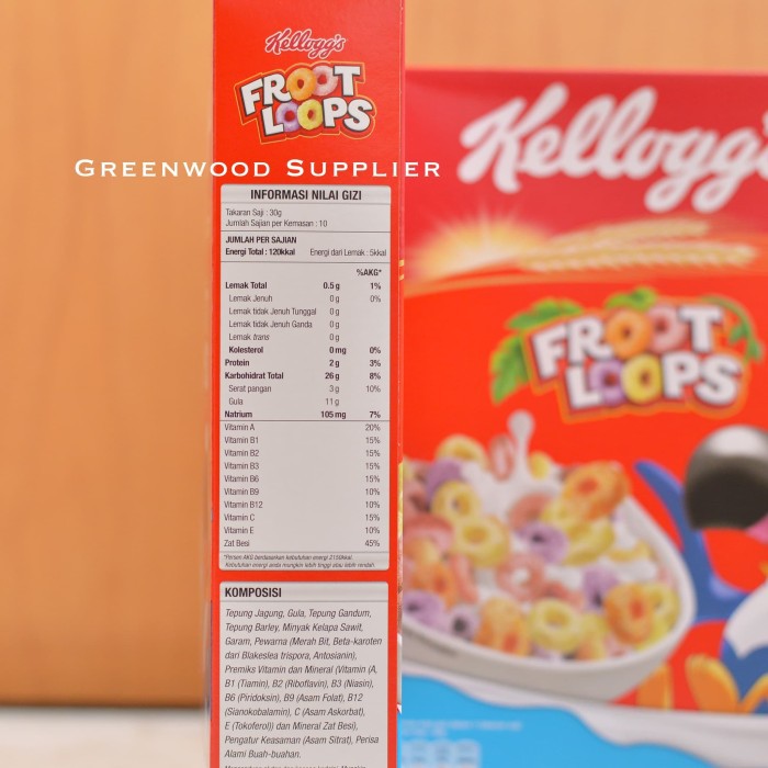 Froot Loops® | Kellogg's Australia Froot Loops® cereal has been a family favourite for years. Froot Loops blend of fruity flavours with the sweet crunch of wheat, oats and corn make for a fun and tasty start to the day. Froot Loops: Are They All the Same Flavor? - SodaCity The nutritional value of Froot Loops. Do you know what's in your breakfast cereal? The next time you're shopping for breakfast, take a look at the ingredients label on the back of the box. Odds are, Froot Loops contains high fructose corn syrup, sugar, and food coloring. While it may be tasty, Froot Loops is hardly a nutritious breakfast ... Kellogg's® Froot Loops® Cereal - SmartLabel™ *The % Daily Value (DV) tells you how much a nutrient in a serving of food contributes to a daily diet. 2,000 calories a day is used for general nutrition advice. smartlabel.kelloggs.com › en_US › ProductKellogg's® Froot Loops® Cereal - SmartLabel™ Kellogg's® Froot Loops® Cereal. 26 oz. 00038000937675. Nutrition . Ingredients . Allergens . Features & Benefits . Company, Brand & Sustainability . 150. Calories. 0.5 g. Sat Fat. 210 mg. Sodium. 12 g. Sugar. Nutrition Facts. Servings Per Container About 18. Serving Size 1 1/3 Cup (39 g) Amount Per Serving Cereal