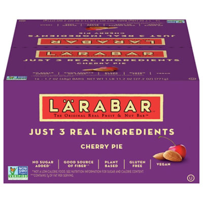 Amazon.com: lara bars Larabar Cherry Pie, Gluten Free Vegan Fruit & Nut Bar, 1.7 oz Bars, 16 Ct 16 Count (Pack of 1) 4.5 (18,967) $1732 ($1.08/Count) $16.45 with Subscribe & Save discount Save 10% with coupon SNAP EBT eligible FREE delivery Mon, Dec 19 on $25 of items shipped by Amazon Arrives before Christmas Add to Cart Climate Pledge Friendly