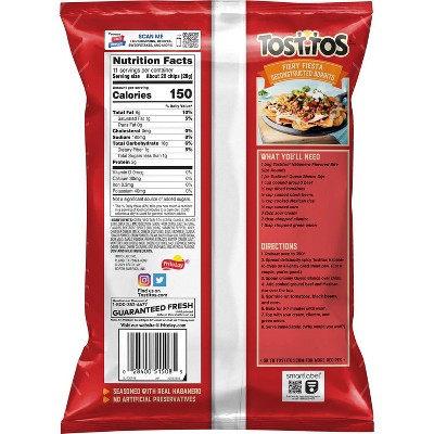 Calories in Tostitos Multigrain Rounds and Nutrition Facts There are 260 calories in 34 chips (50 g) of Tostitos Multigrain Rounds.: Calorie breakdown: 45% fat, 51% carbs, 5% protein. › b › tostitosTostitos : Target Tostitos Original Restaurant Style Tortilla Chips - 17oz Tostitos 564 SNAP EBT eligible $5.99 ($0.35/ounce) When purchased online Tostitos Cantina Thin & Crispy - 10oz Tostitos 760 SNAP EBT eligible $4.69 ($0.47/ounce) When purchased online Tostitos Chunky Salsa Medium - 15.5oz Tostitos 538 SNAP EBT eligible $4.49 When purchased online