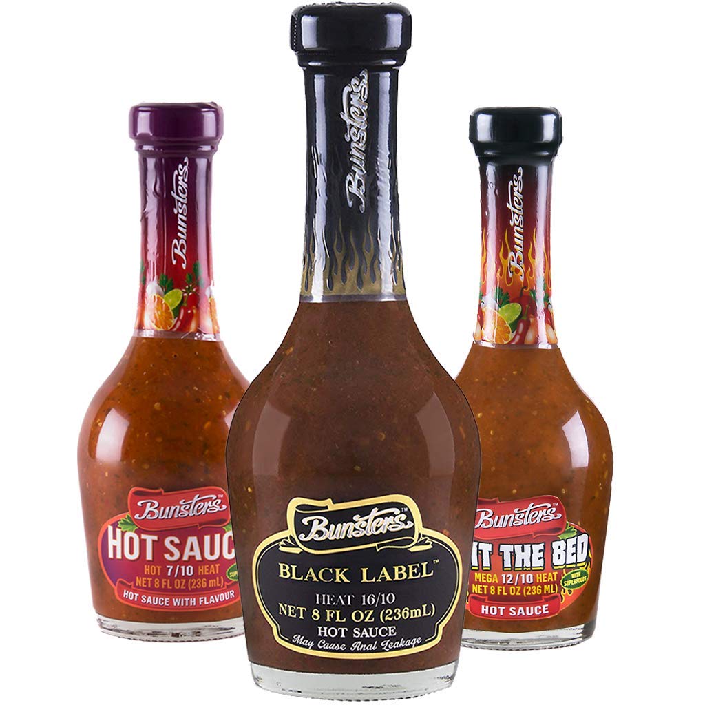 1 x Black Label Hot Sauce (16/10 Heat) – Bunsters Worldwide Bunsters Black Label is the only ultra hot sauce with flavour. Loaded with Scorpion chillies (the #3 hottest chilli in the world), orange juice, garlic, onions, lime, ginger, goji berries and herbs this is the one hot sauce hard core chilli heads will keep coming back to. Bunsters Hot Ones Hot Sauce - Black Label 16/10 Heat Chili ... Bunsters Hot Ones Hot Sauce - Black Label 16/10 Heat Chili Pepper Sauce - Extreme Heat Around 99,000 on the Scoville Scale - Packed with Aussie Fruit and Veg Visit the Bunsters Store 489 ratings | 13 answered questions Price: $22.50 ($2.81 / Fl Oz) Diet type Vegan Ingredients About this item Bunsters Hot Ones Hot Sauce Gift Pack - Features STB, Black ... Visit the Bunsters Store 68 ratings Price: $68.00 ($2.13 / Fl Oz) Diet type Vegan Ingredients About this item ULTRA HOT WITH FLAVOR - Imported from Australia this hot sauce has an impeccable blend of heat and flavor in a generous 8oz bottle. It measures around 35,000 on the Scoville Scale.