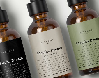 Cosmetic Product Packaging Labels — 2 oz Dropper Bottle Label Template DIY — Custom Beauty Labels — Tincture Skincare Labels Stickers・Matcha
