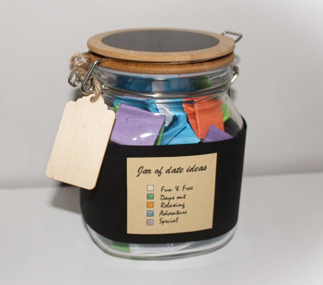 Easy DIY Date Night Jar, Perfect for Valentines Day! DIY Date Night Idea Jar Step 4: Affix Your Label and Decorate Your Jar Once you've filled up your jar, twist the top of the jar back on. Cut out the label that you printed and, using a little glue, affix it to your jar. (You can also print the label onto a sticker if you're feeling fancy.)