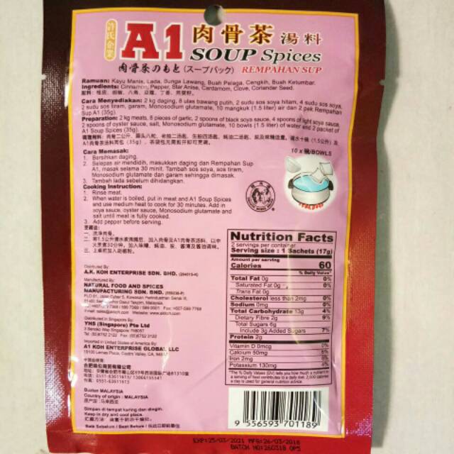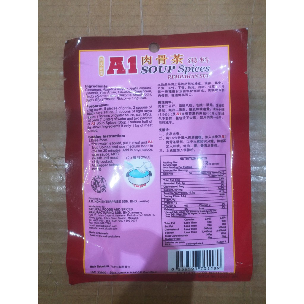 A1 ingredients label